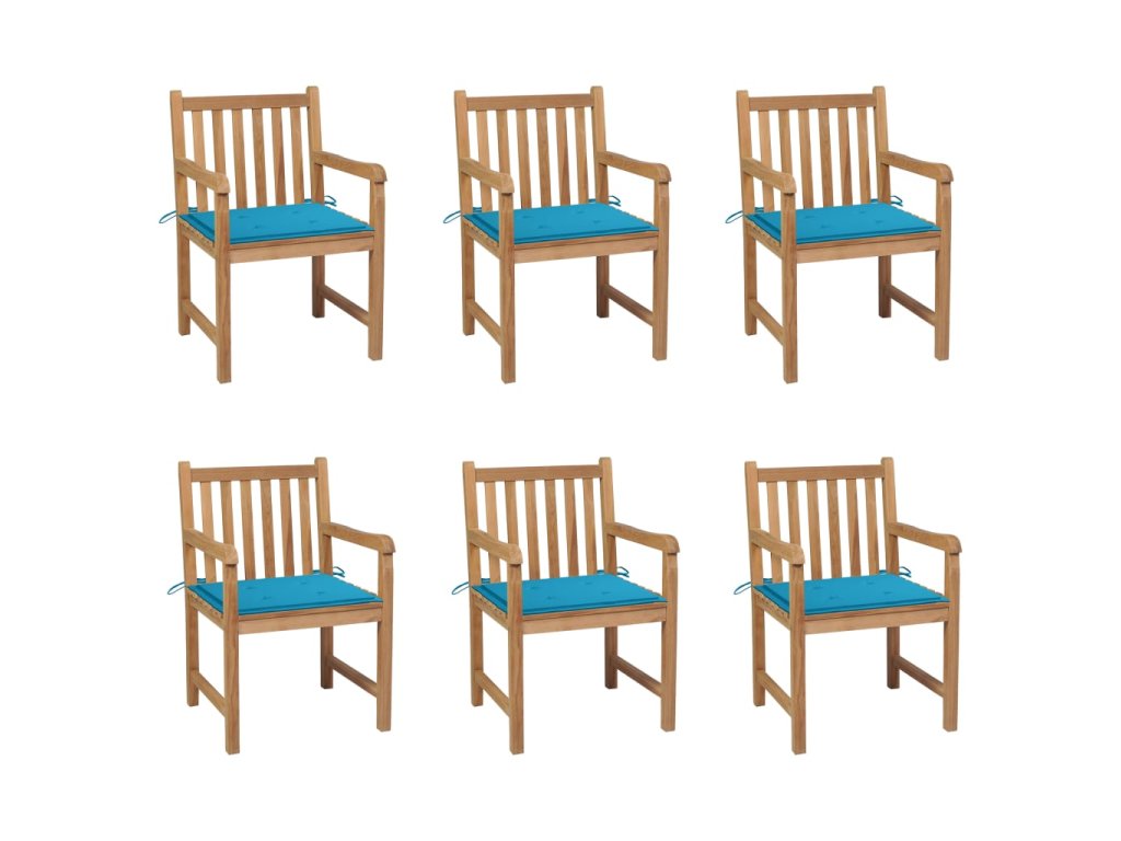 Zahradní židle 6 ks modré podušky masivní teak