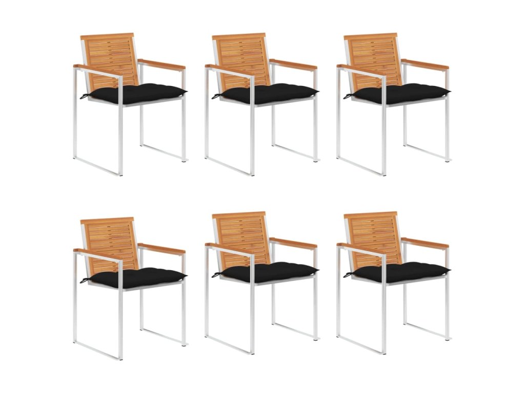Jídelní židle jsou vyrobené z masivního akáciového dřeva a prvotřídní nerezové oceli. Proto mají dlouhou životnost, jsou odolné vůči rzi, robustní a snadno se čistí vlhkým hadříkem. Podušky, jež jsou více než jen praktický doplněk, mají také dekorativní funkci. Usaďte se k chutné večeři na zahradě nebo odpočívejte a užívejte si počasí s touto sadou klasických zahradních židlí.