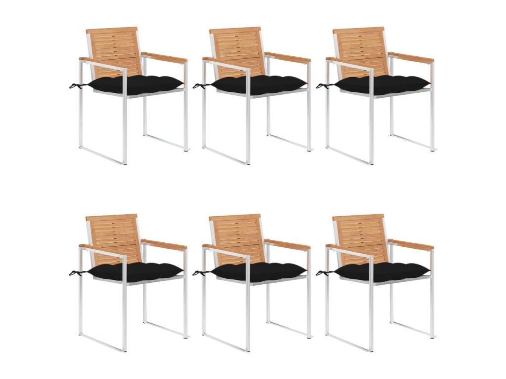 Nábytek je zhotovený z extrémně odolného teakového tvrdého dřeva, které již prošlo procesem smršťování, bylo uměle vysušené a poté jemně a dohladka obroušené. Teakové dřevo je oceňované pro svou výjimečnou pevnost a klimatickou odolnost, a proto je jedním z nejoblíbenějších materiálů pro výrobu zahradního nábytku. Je to skvělá volba, pokud si chcete pořídit venkovní výbavu, která vám vydrží sloužit dlouhá léta. Vzhledem k rámu z vysoce kvalitní nerezové oceli jsou židle zároveň robustní a odolné vůči korozi. Přiložená poduška slouží nejen jako praktický doplněk – plní také dekorativní funkci. Posaďte se a dopřejte si venku skvělou večeři nebo si jen tak odpočiňte a užívejte si počasí s touto klasickou sadou zahradních židlí.