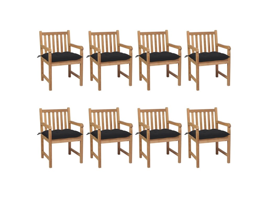 Zahradní židle 8 ks černé podušky masivní teak