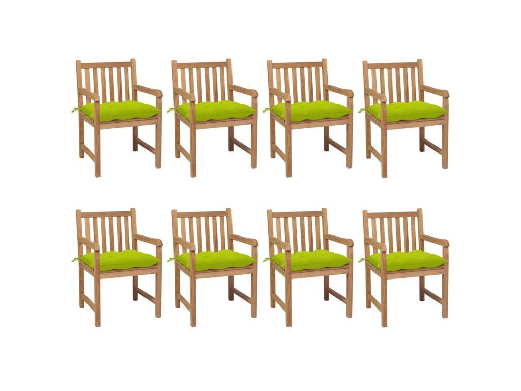 Zahradní židle 8 ks s jasně zelenými poduškami masivní teak