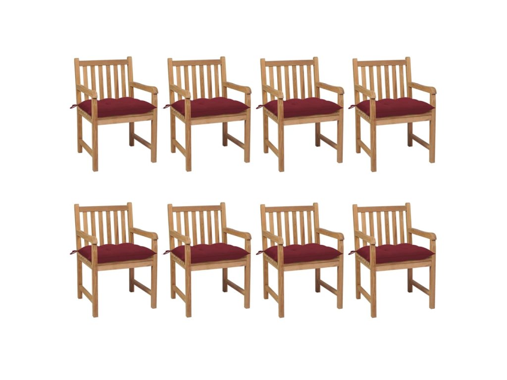 Zahradní židle 8 ks s vínovými poduškami masivní teak