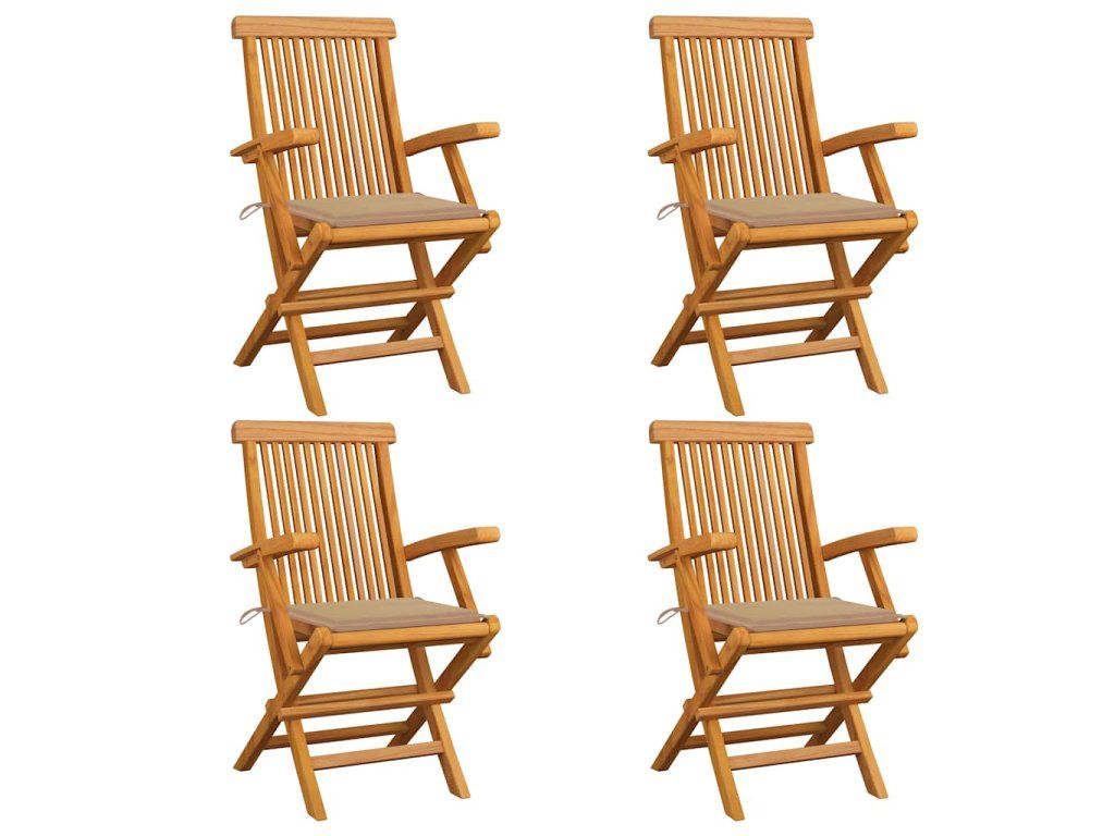 Zahradní židle s béžovými poduškami 4 ks masivní teak