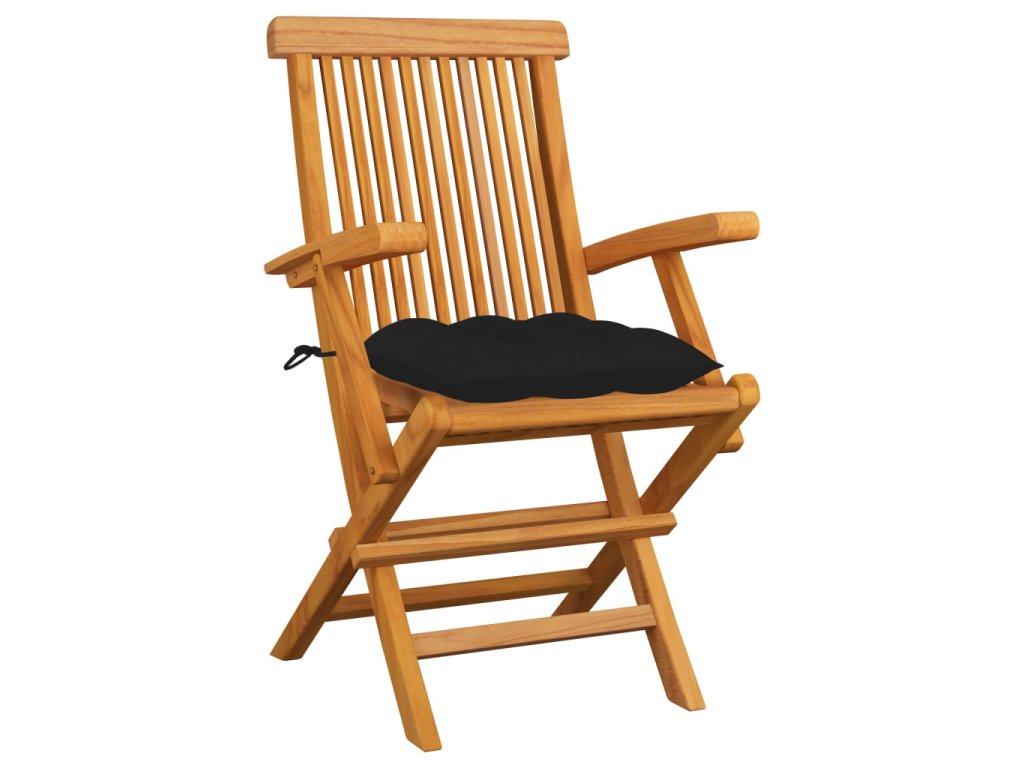 Zahradní židle s černými poduškami 3 ks masivní teak