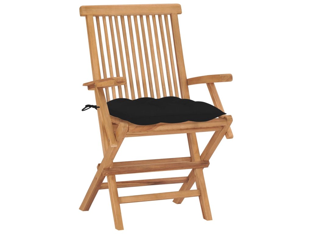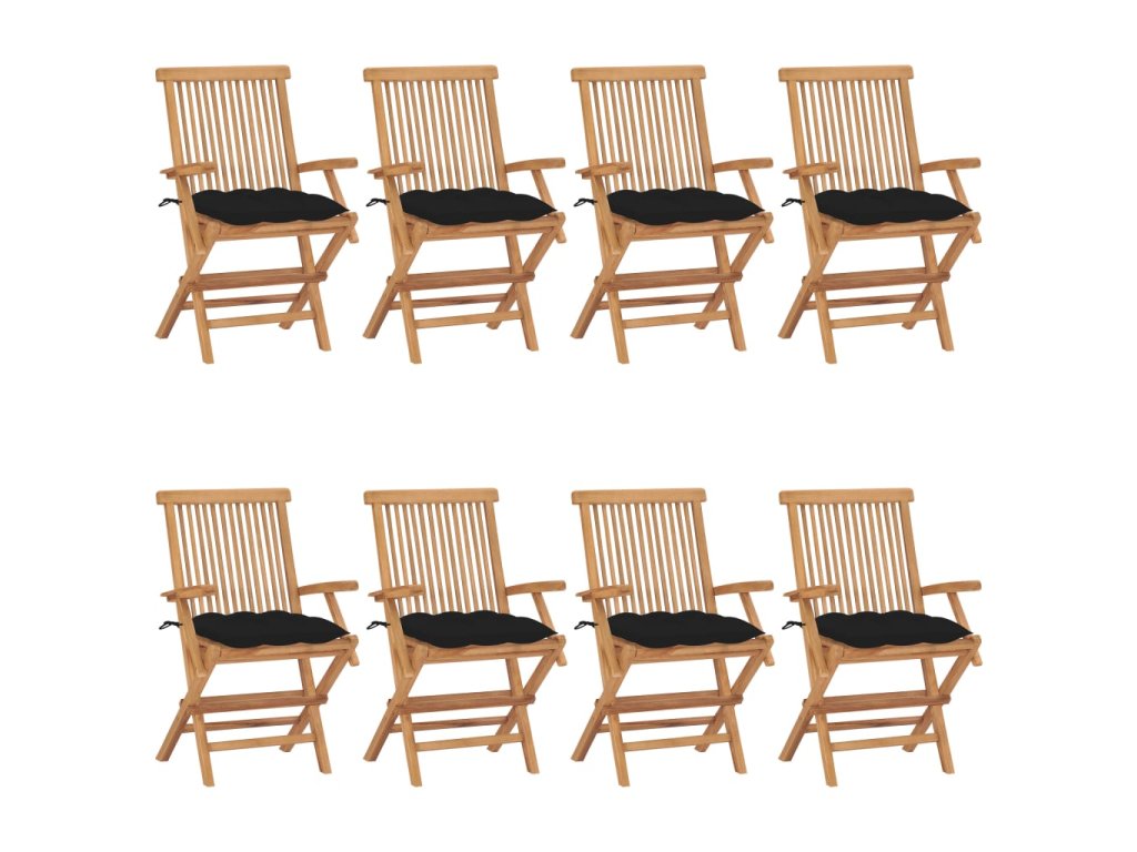 Zahradní židle s černými poduškami 8 ks masivní teak