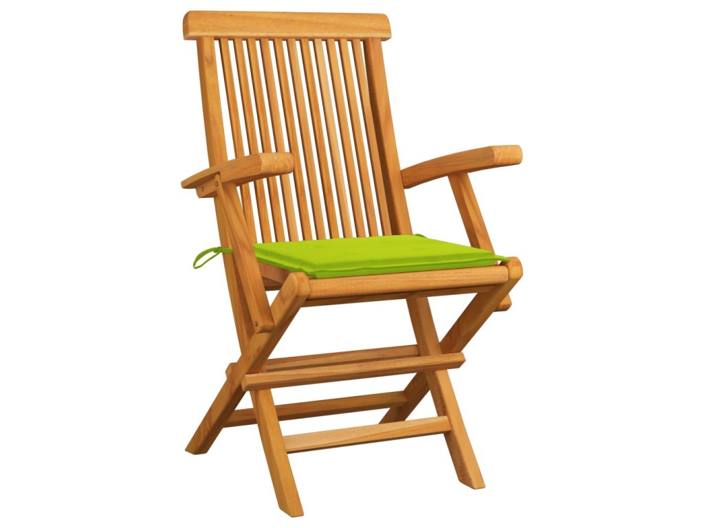 Zahradní židle s jasně zelenými poduškami 2 ks masivní teak