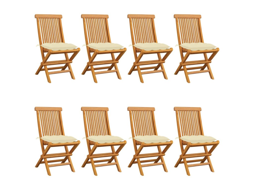 Zahradní židle s krémově bílými poduškami 8 ks masivní teak