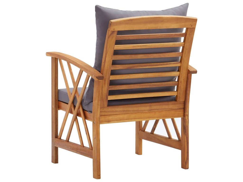 Zahradní křeslo je vyrobené z masivního akáciového dřeva s olejovým povrchem, je stabilní a má dlouhou životnost. Řemeslné zpracování a krásná kresba dřeva dává každému kusu nábytku jeho charakteristický a neopakovatelný vzhled. Podušky na sedáku a polštář za záda přispívá k pohodlnému posezení.