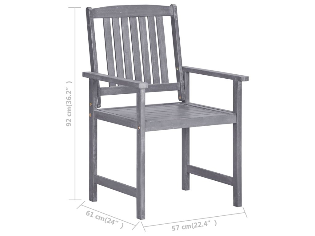 Zahradní židle jsou vyrobené z masivní akácie s povrchem zesvětleným do šeda. Jedná se o tvrdé dřevo s hustou kresbou. Masivní akáciové dřevo se vyznačuje schopností unést i velkou váhu a zároveň skvěle odolává opotřebení a působení času. Sada dřevěných židlí je stabilní, hodně toho vydrží a nepodléhá klimatickým vlivům. Jejich povrch se navíc snadno čistí navlhčeným hadříkem. Přiložené podušky vám zajistí maximální pohodlí.