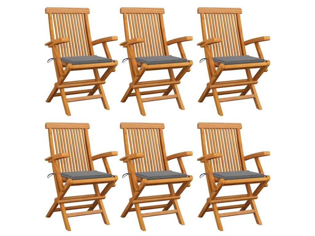 Zahradní židle s šedými poduškami 6 ks masivní teak