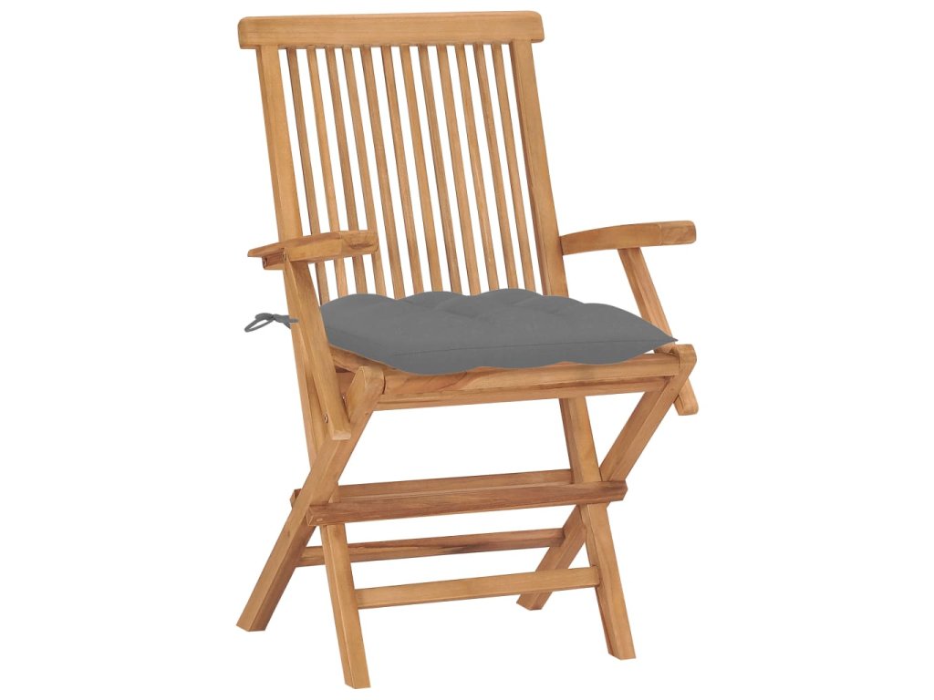 Zahradní židle s šedými poduškami 8 ks masivní teak