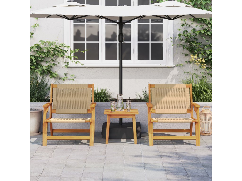 - Součásti: Tento kompletní set obsahuje ergonomické opěrky a pevné rámy, vyrobené z masivního akáciového dřeva. Čalouněná sedadla z poly ratanu dodávají extra pohodlí a trvanlivost. Všechno spolu skvěle funguje a proměňuje vaši zahradu v příjemné místo, kde se snoubí styl a funkčnost.