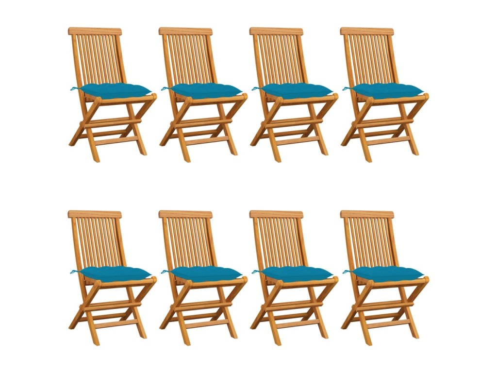 Zahradní židle se světle modrými poduškami 8 ks masivní teak