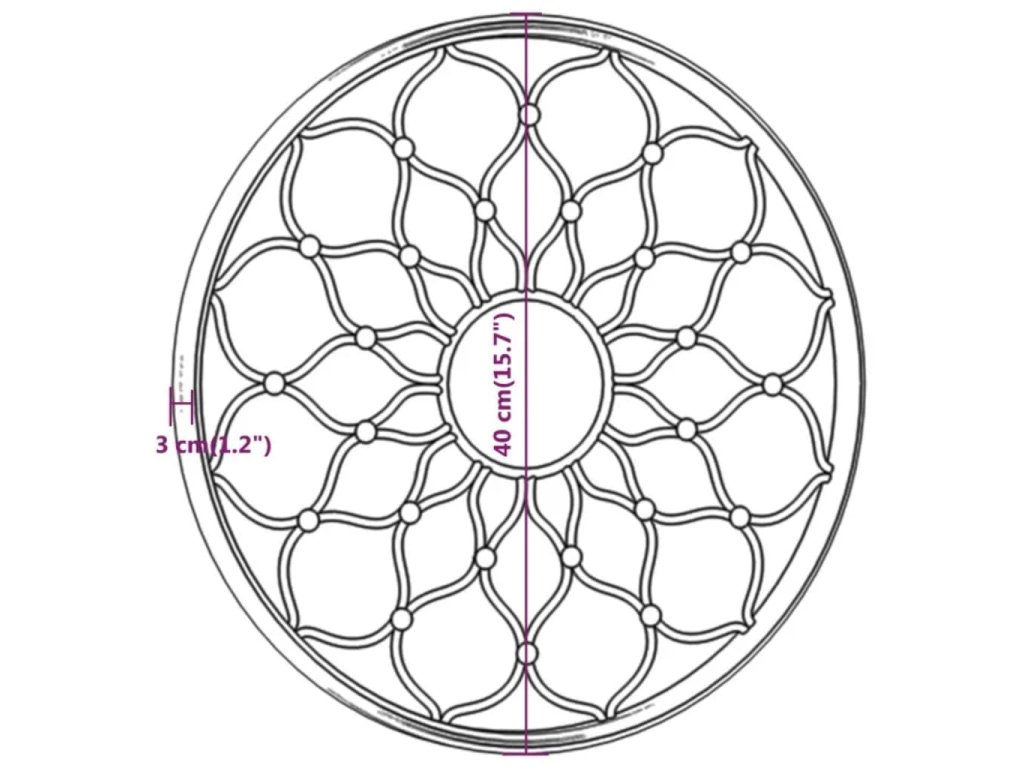 Rám zrcadla je vyroben ze železa, takže je odolné a stabilní. Se svým dekorativním květinovým designem se skvěle hodí pro venkovní použití. Lze jej použít ke zvýraznění zahradního prvku jeho odrazem v zrcadle nebo k odklonu světla do tmavého rohu. Umístění zrcadla v zahradě je kreativní způsob, jak povznést její vzhled a opticky jí zvětšit. Pomocí předvrtaného otvoru v jeho horní části lze dekorativní zrcadlo snadno připevnit na zeď.
