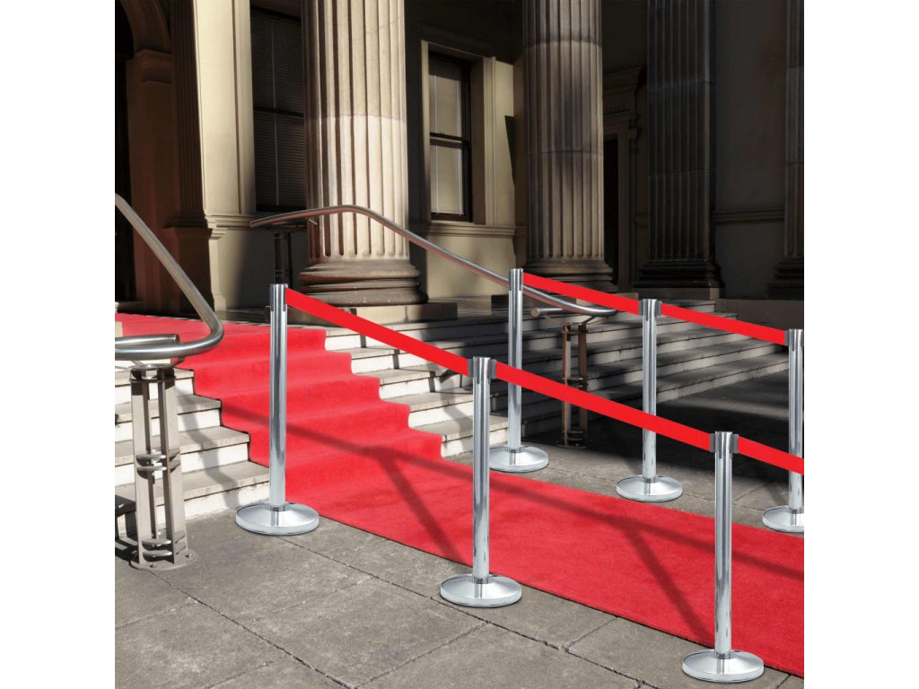 Sloupky z nerezové oceli jsou korozivzdorné a odolné vůči škrábancům a dalším typům poškození. Skvěle se proto hodí pro dlouhodobé použití. Každý sloupek je opatřený základnou, která zaručuje výbornou stabilitu a odolnost proti větru. Kryt základny chrání podlahu před poškrábáním. Samonavíjecí pás je zakončený zajišťovacím čepem a disponuje čtyřsměrným systémem, aby vyhověl vašim konkrétním potřebám.