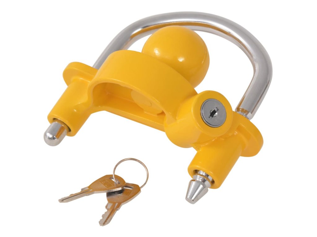 Zámek tažného kloubu s 2 klíči, ocel a hliníková slitina, žlutý