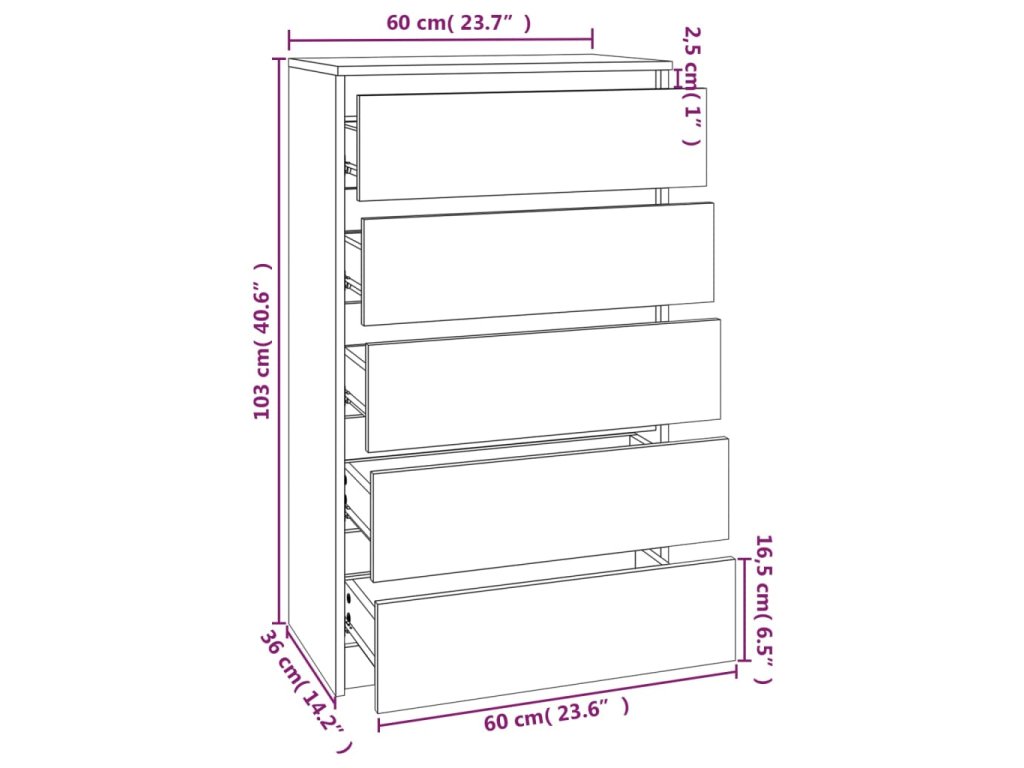 - Spousta úložného prostoru: Úložná skříňka je vybavena 5 zásuvkami. V prostorných zásuvkách budete mít všechny své věci přehledně uspořádané.