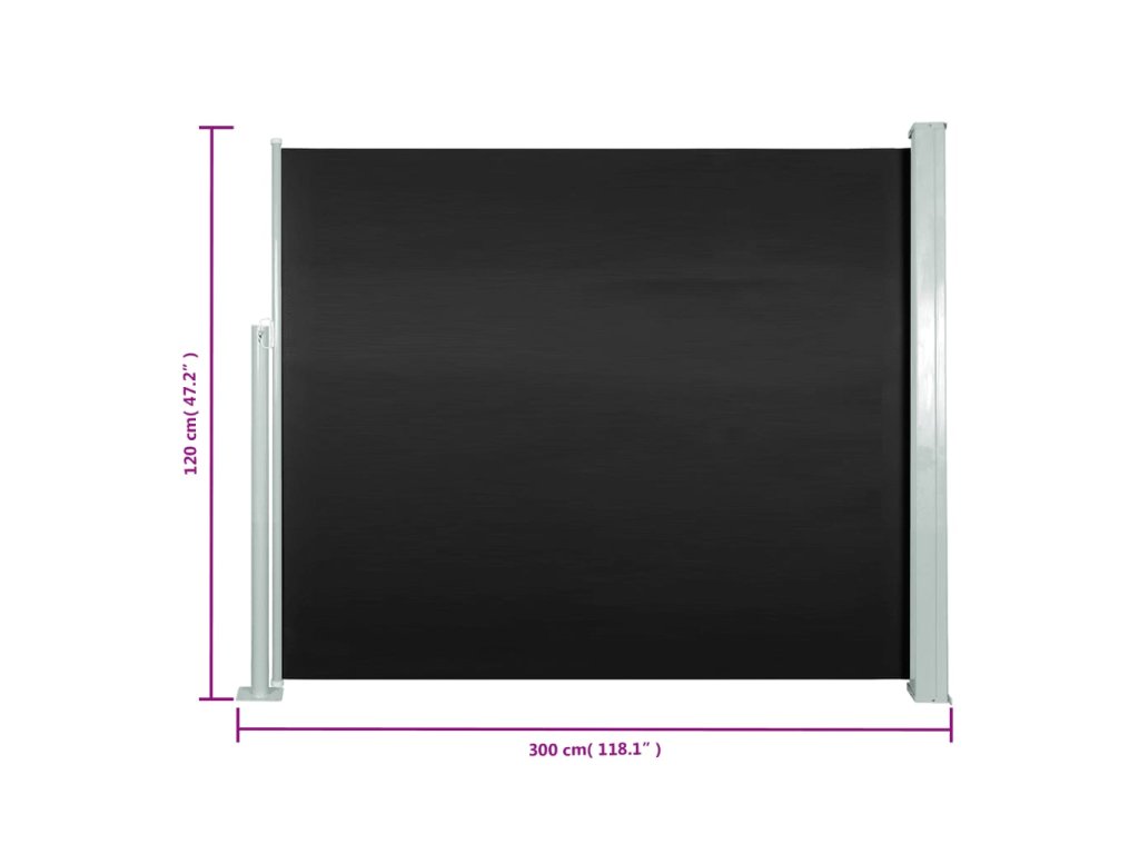 Zatahovací boční markýza / zástěna 120 x 300 cm černá