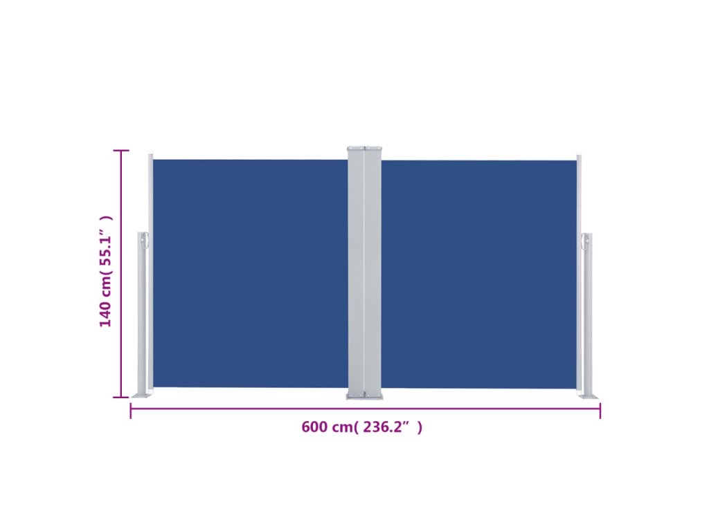 Zatahovací boční markýza / zástěna modrá 140 x 600 cm