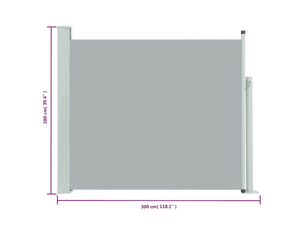 Zatahovací boční markýza/zástěna na terasu 100 x 300 cm šedá