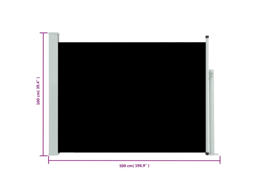 Zatahovací boční markýza/zástěna na terasu 100 x 500 cm černá