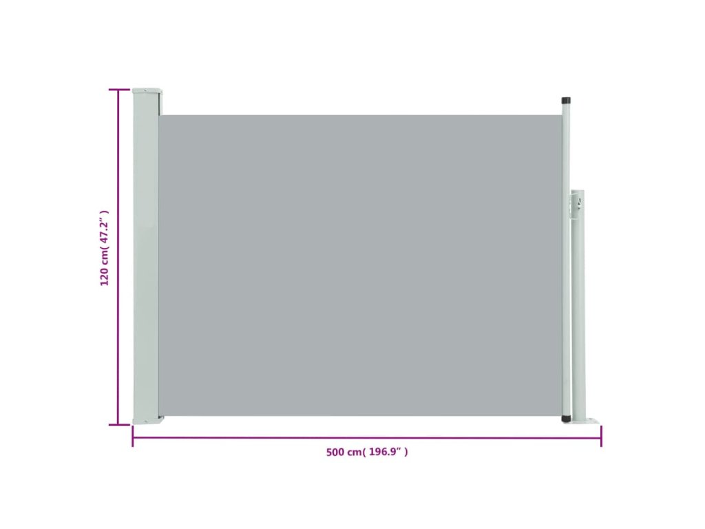 Zatahovací boční markýza/zástěna na terasu 120 x 500 cm šedá