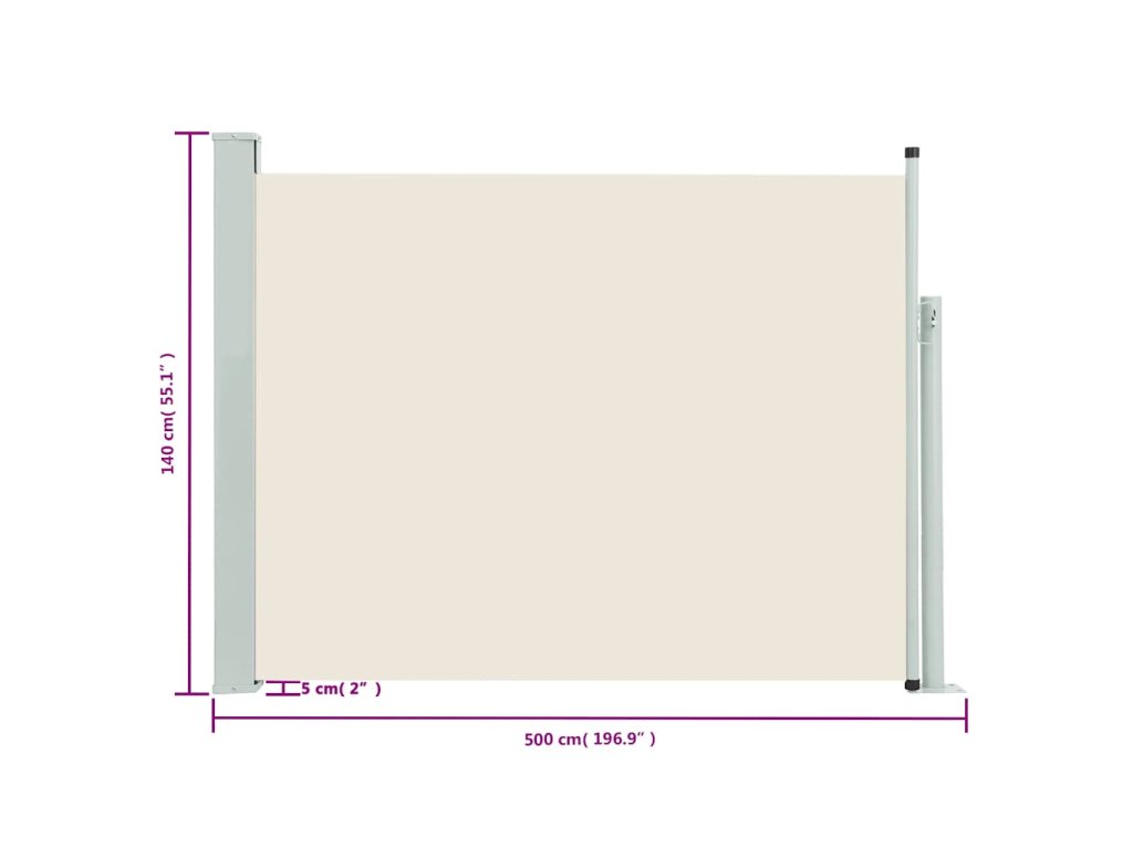 Zatahovací boční markýza/zástěna na terasu 140 x 500 cm krémová