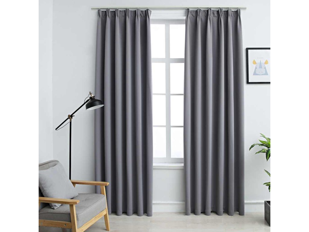 Zatemňovací závěsy s háčky 2 ks šedé 140 x 245 cm