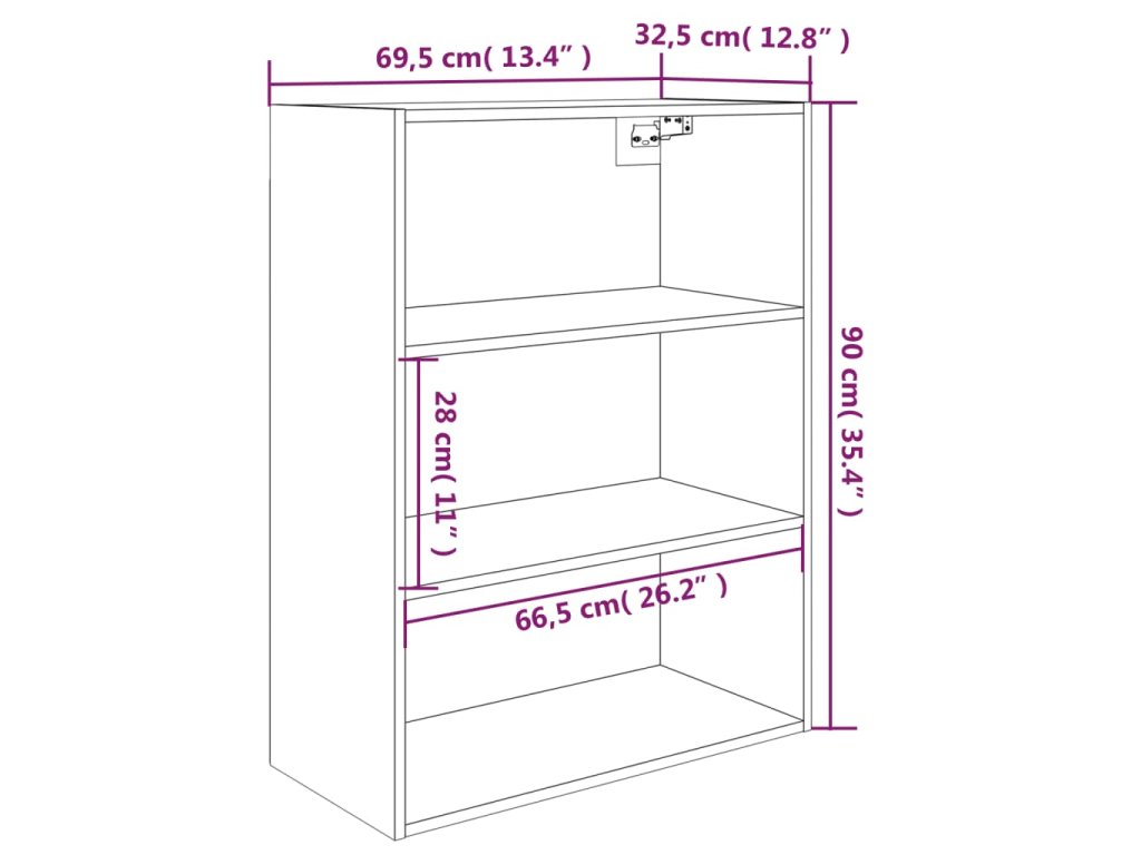 Závěsná nástěnná skříňka bílá 69,5 x 32,5 x 90 cm