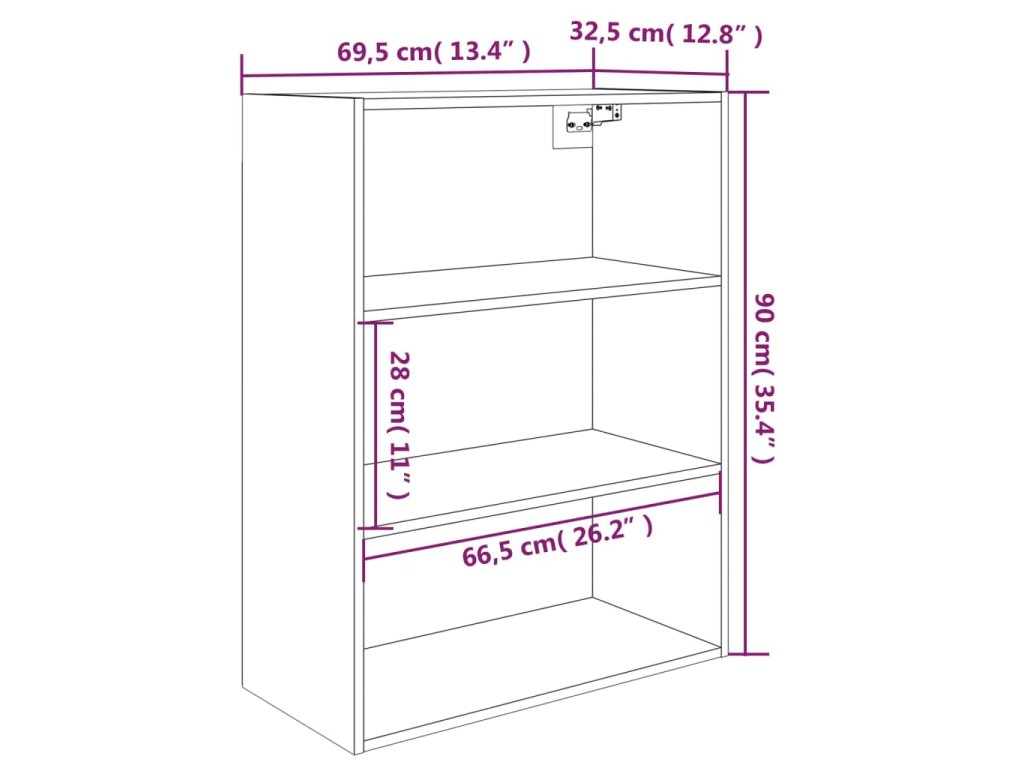 Závěsná nástěnná skříňka hnědý dub 69,5 x 32,5 x 90 cm