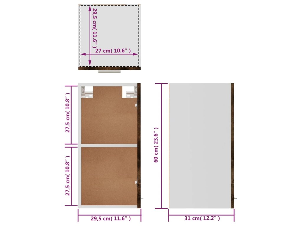 Závěsná skříňka "Lyon" kouřový dub 29,5 x 31 x 60 cm, konstrukční dřevo