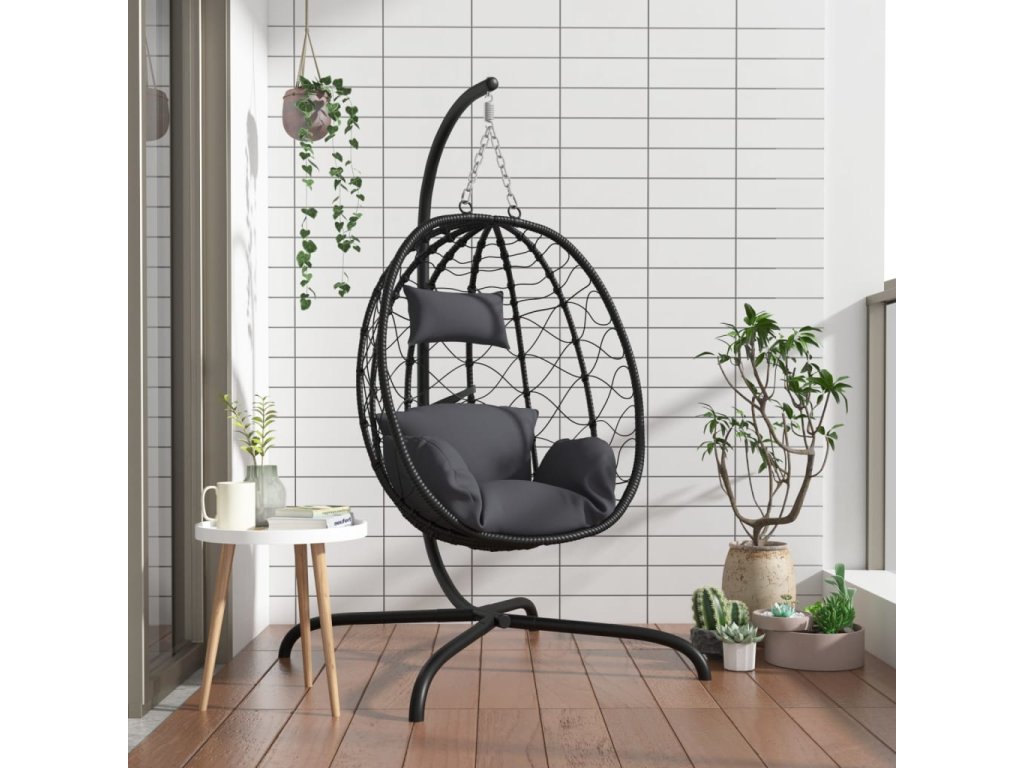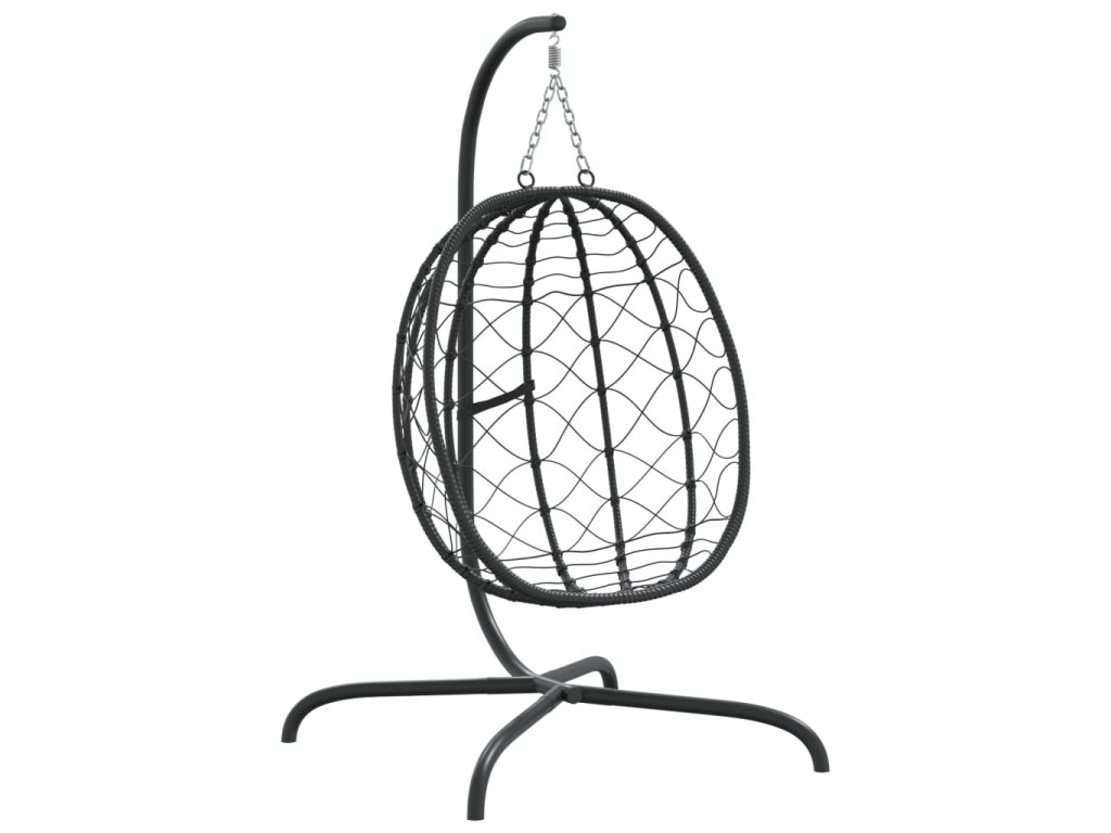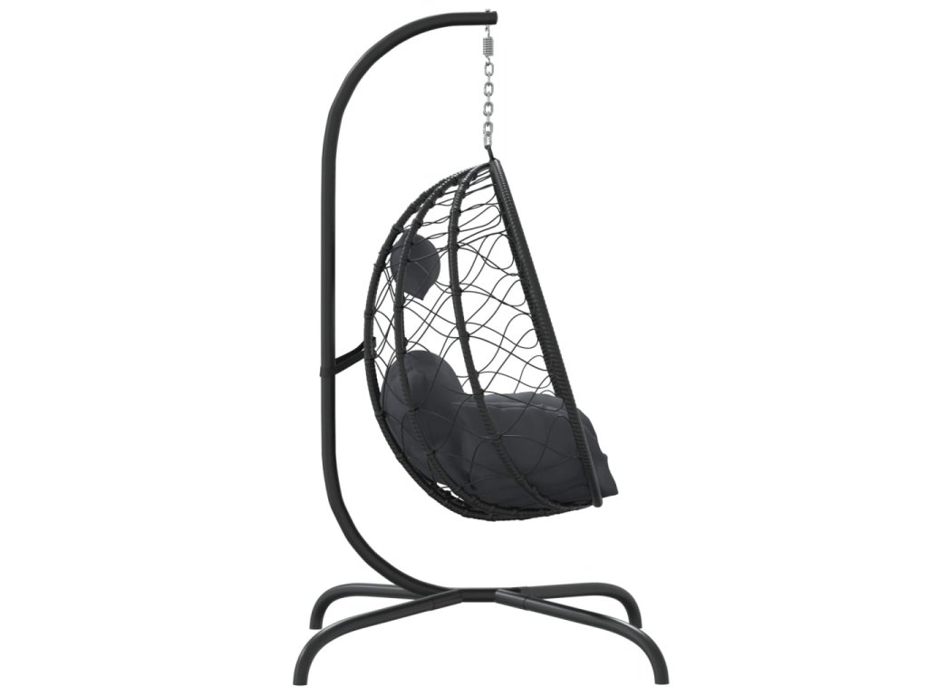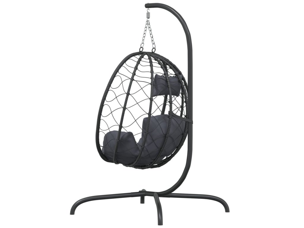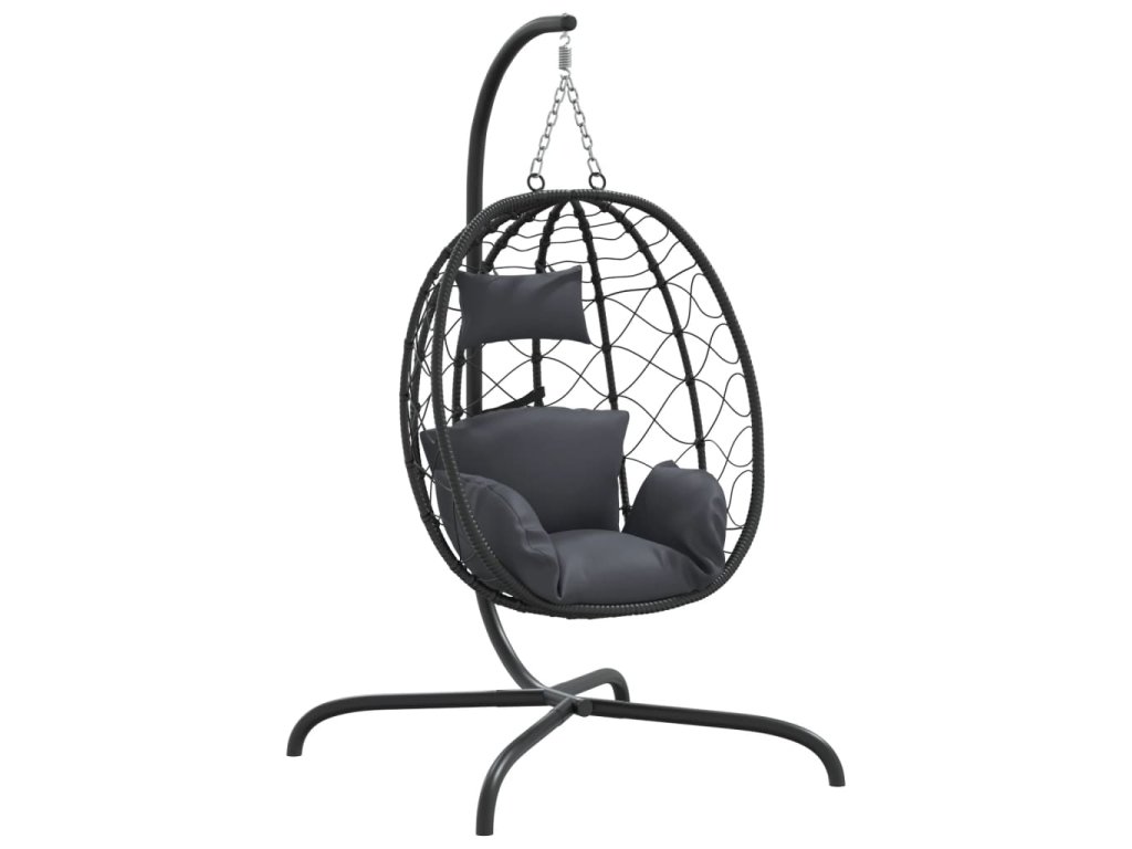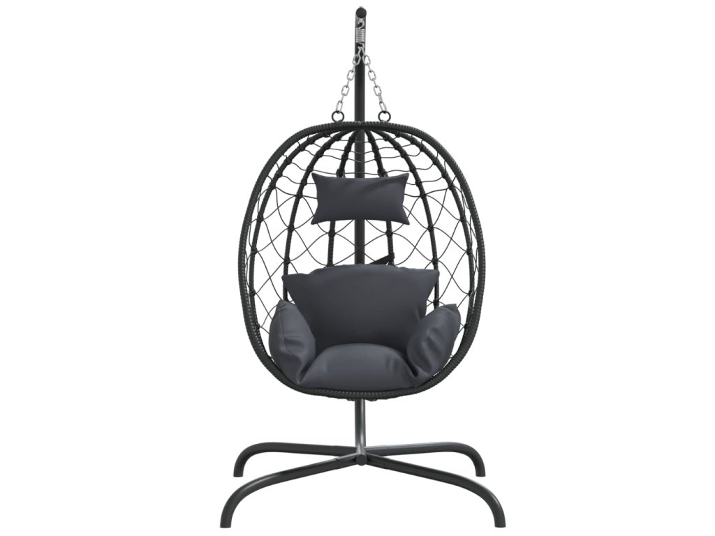 Závěsné křeslo ve tvaru vejce s polštářem antracitové polyratanové a ocelové
