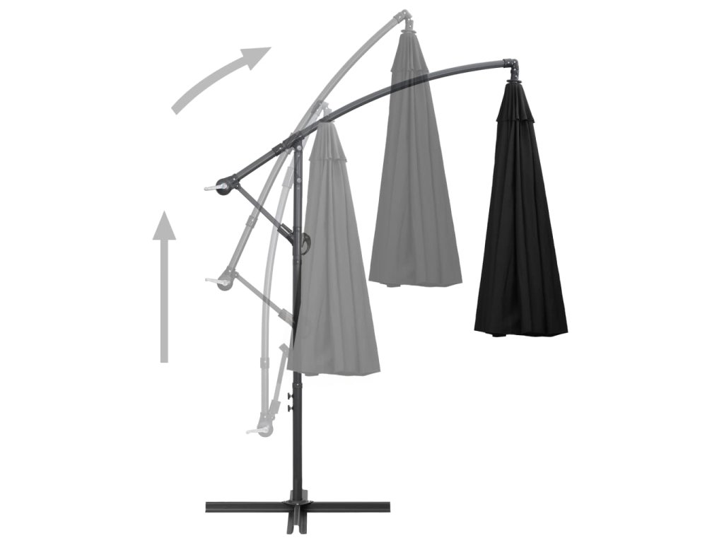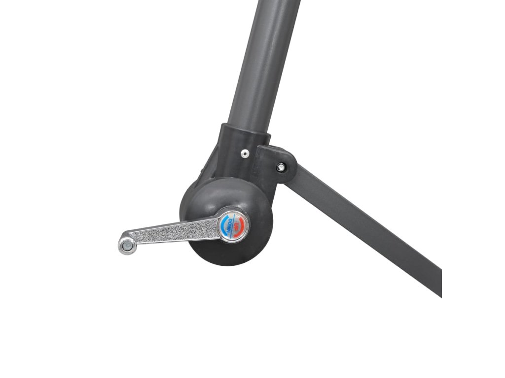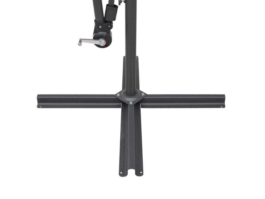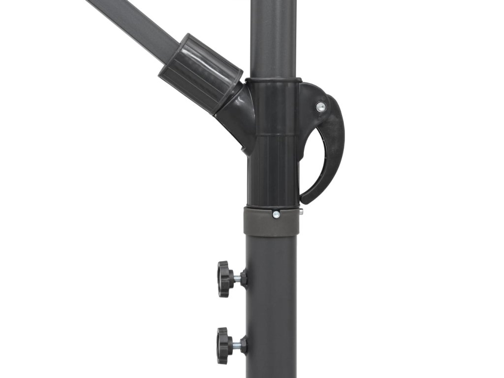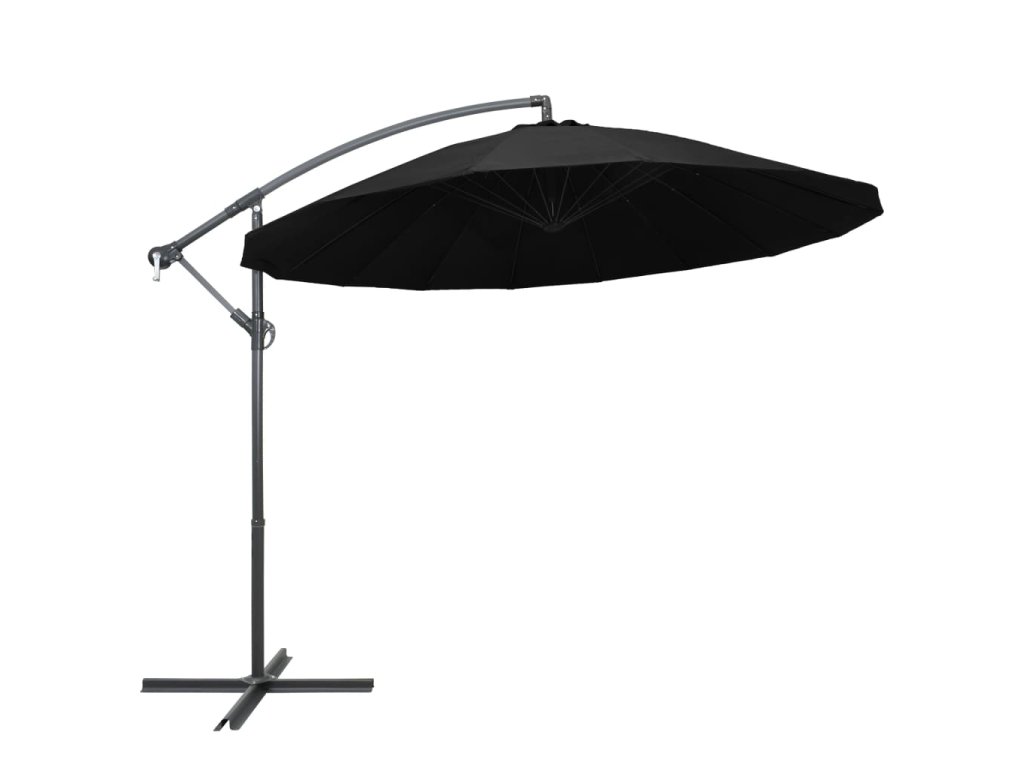 Stříška slunečníku je vyrobená z polyesterové tkaniny, která nebledne a nepropouští škodlivé UV záření, takže vám poskytne optimální ochranu před sluncem. Navíc se snadno čistí. Pevná křížová základna zvyšuje stabilitu slunečníku. Jeho exkluzivní konstrukce vám nabízí mimořádně velkou plochu k zablokování slunce. Silná hliníková tyč s 16 odolnými žebry zajišťuje, že se slunečník nehýbe a hodně toho vydrží. Zahradní slunečník disponuje klikovým mechanismem, což znamená, že se snadno otevírá i zavírá. Sestavení výrobku je jednoduché.