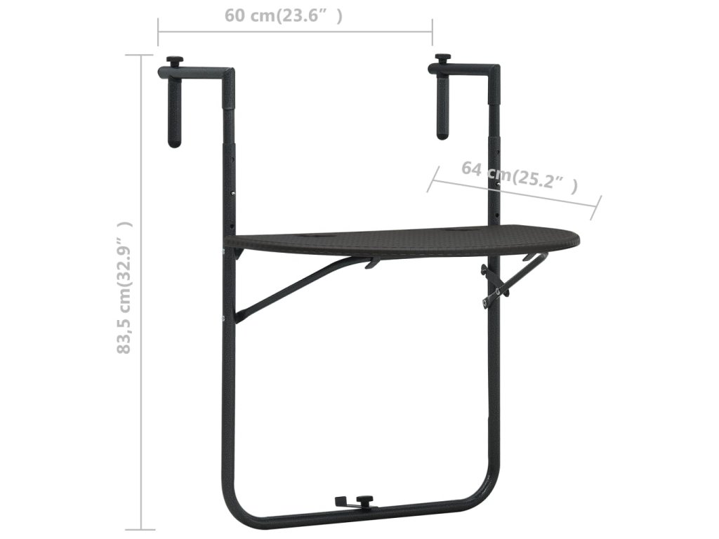 Závěsný stůl na balkon hnědý 60x64x83,5cm plast ratanový vzhled