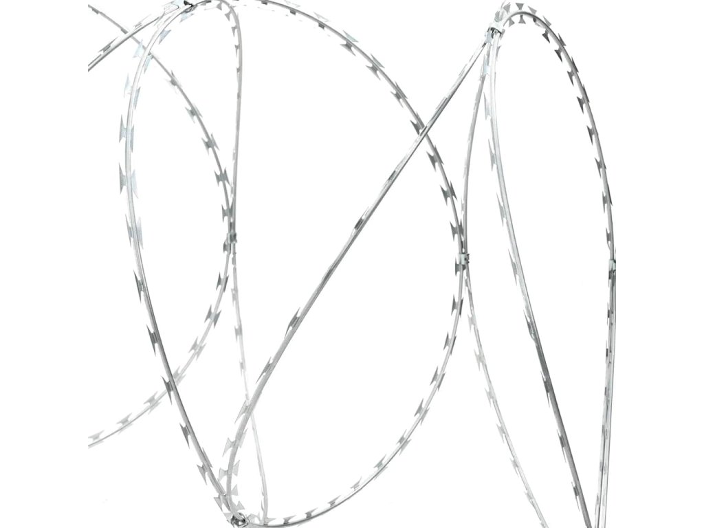 Tento robustní žiletkový ostnatý drát lze roztáhnout až na délku 60 m. Je navržen tak, aby účinně zabránil vstupu neznámým útočníkům. Při použití může délka stočeného drátu dosáhnout 17–20 m. Žiletkový drát lze navíjet okolo zahradního plotu a zvýšit tak bezpečnost. Design žiletek drží nežádoucí hosty mimo vaši zahradu a zabraňuje nechtěnému vniknutí.