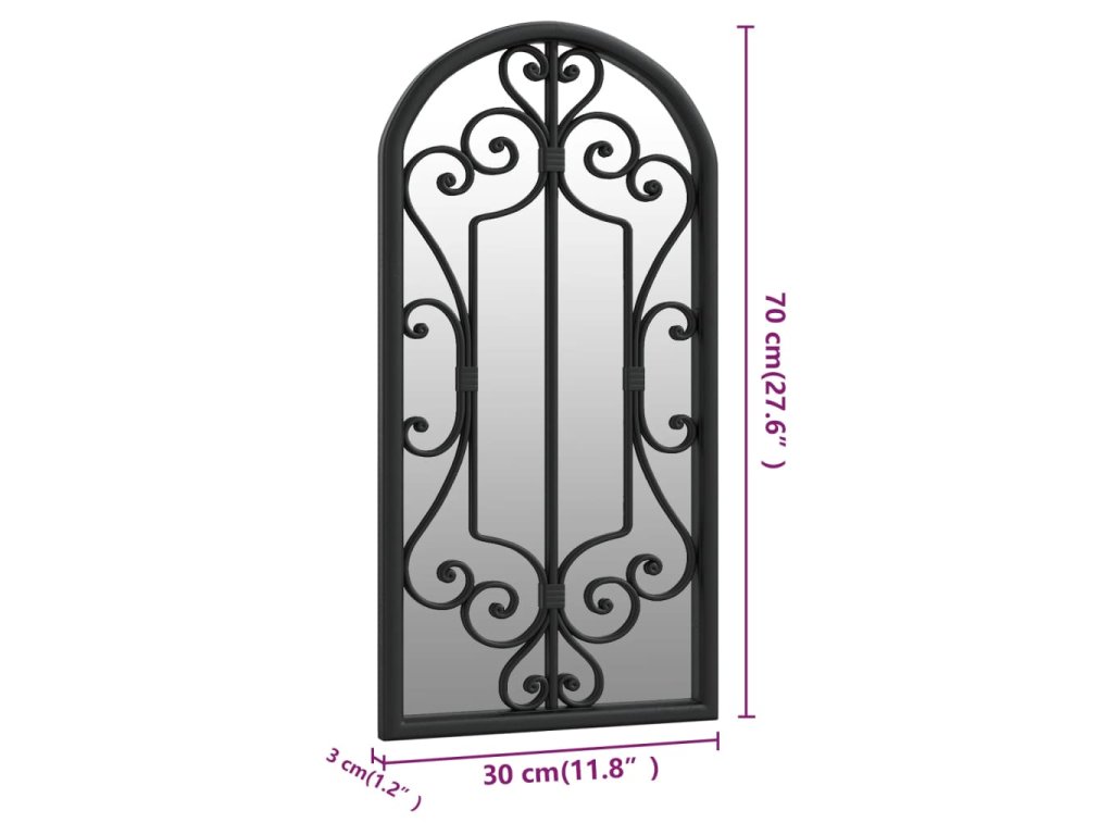 Zrcadlo černé 70 x 30 cm železo do interiéru