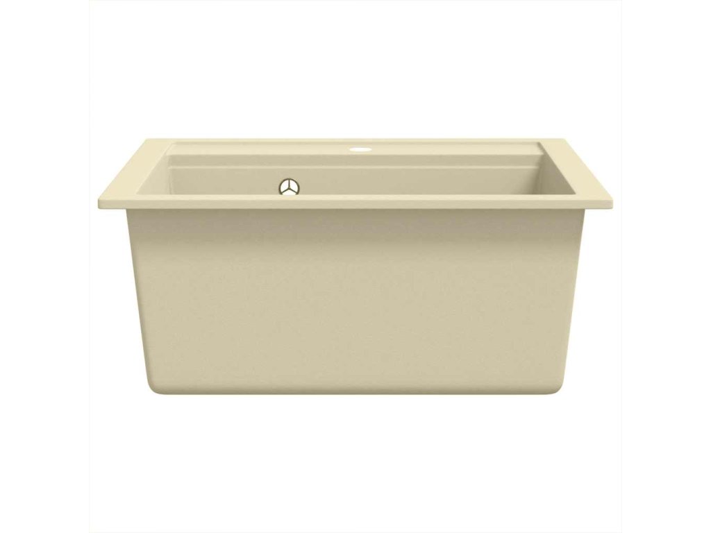 Dřez je zhotoven z vysoce kvalitní žuly, výborně tedy odolává teplu, poškrábání a nárazům a snadno se čistí. Součástí balení je i sítko na odpad pro jednodušší odstraňování nečistot.