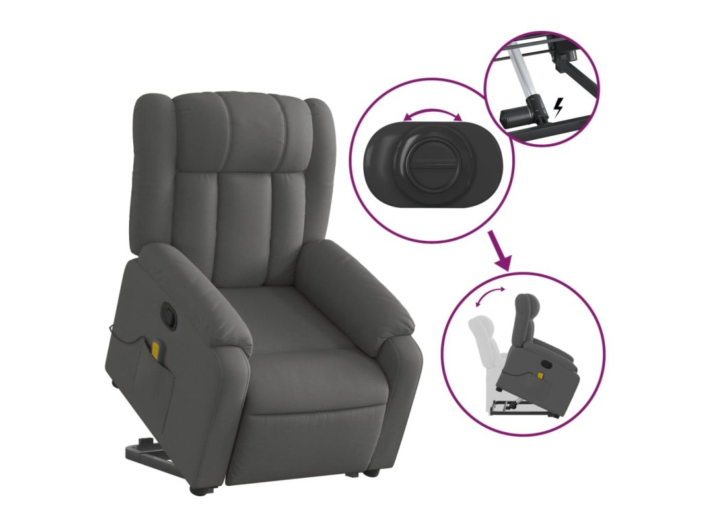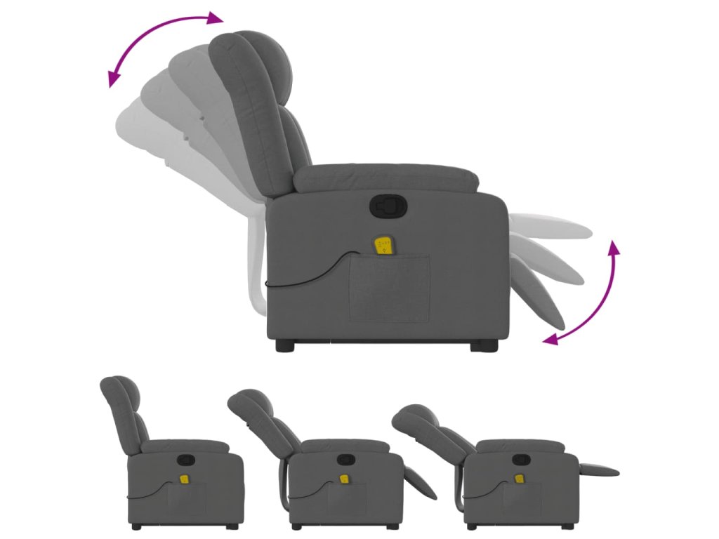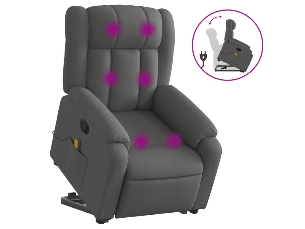 Zvedací masážní polohovací křeslo tmavě šedé textil